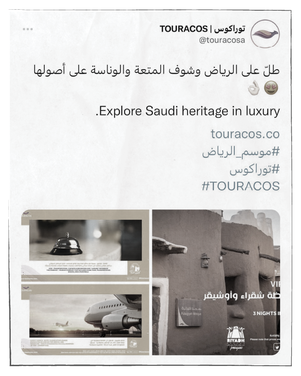 Touracos; It is the first electronic platform of its kind in Saudi Arabia that offers many tourism packages, owned by Al Sarh Company, owned by Sierra Company, one of the Public Investment Fund companies.